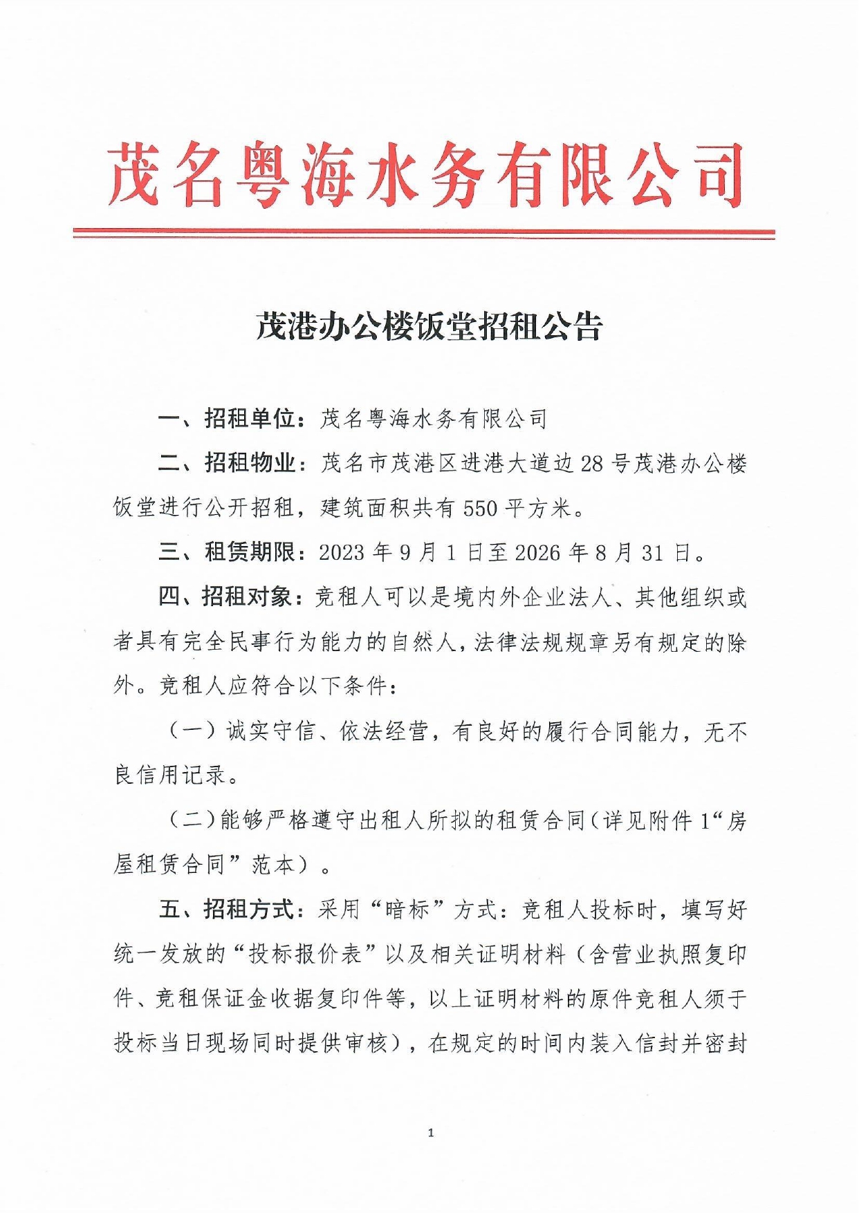 附件3、茂港辦公樓飯?zhí)谜凶庠u標辦法
