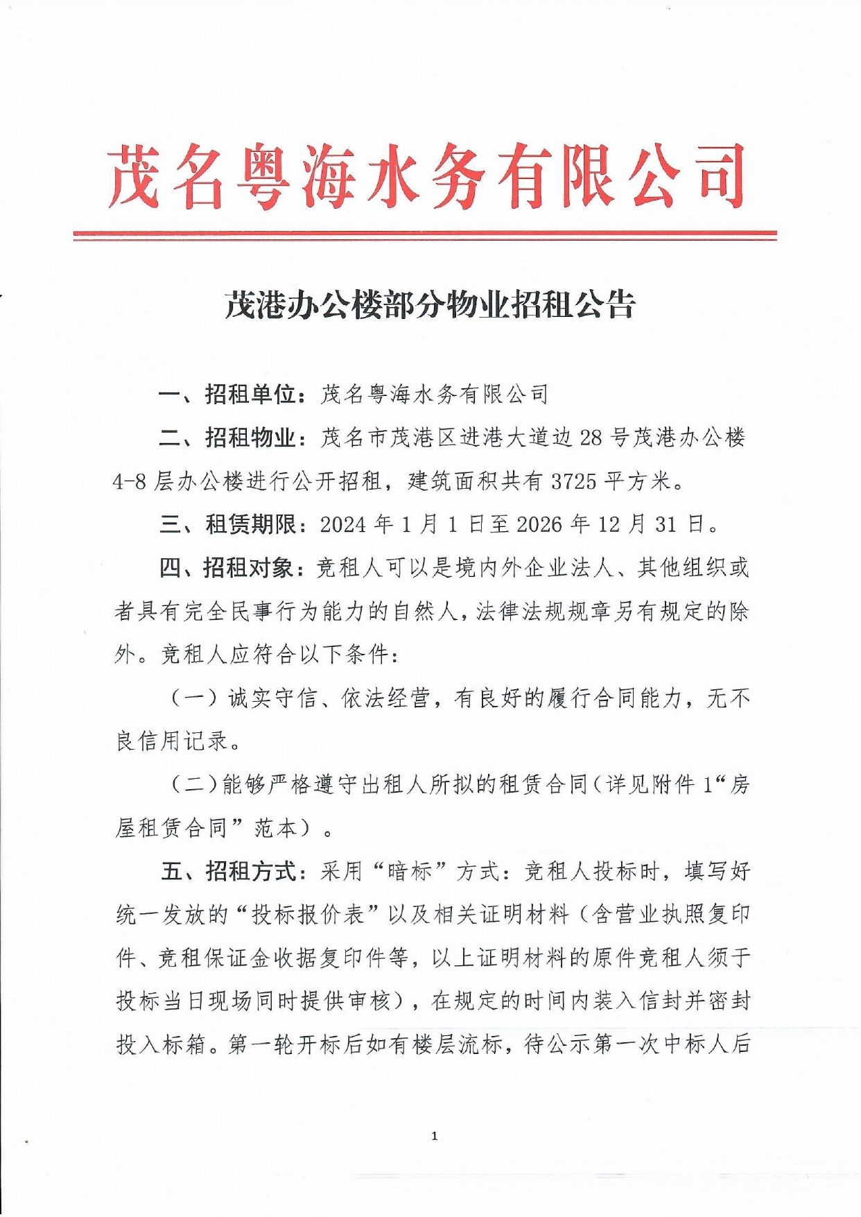 茂港辦公樓部分物業(yè)招租公告